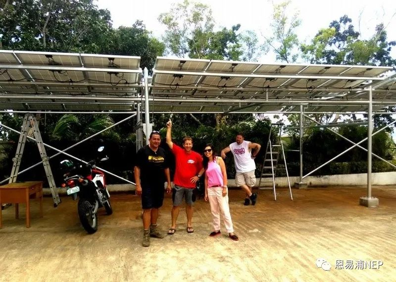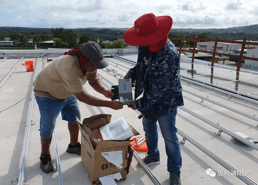 logo的工作装,带领他的团队将NEP微型逆变器装在了关岛的各种领域,家庭屋顶、院子、酒店屋顶、泳池、度假村屋顶、车棚、4S店屋顶、厂房屋顶...